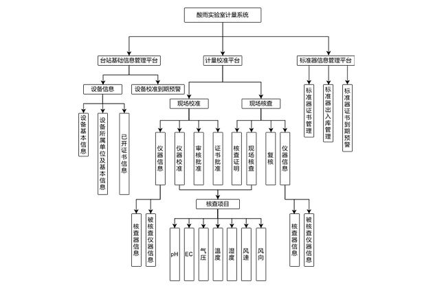 酸雨實驗室計量現場校準核查信息系統(tǒng)可實現自動氣象站雨量傳感器和數據采集器等現場校準,以及校準后的氣壓、溫度、濕度、風速、風向、pH、EC等傳感器的現場核查,數據自動處理,并支持打印校準證書和數據記錄表輸出等功能。