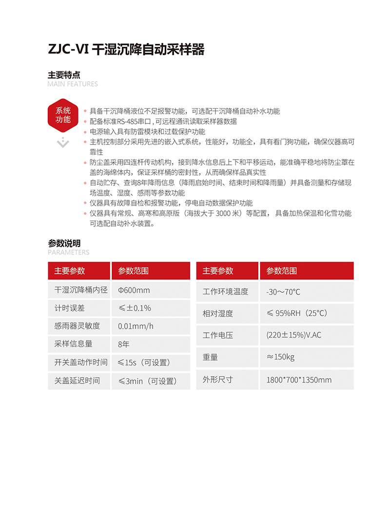 本儀器采用雙桶四聯(lián)桿結(jié)構(gòu),適用于各級輻射監(jiān)測站和科研院所有選擇性地采集干濕性沉降物,進(jìn)行大氣中輻射量的監(jiān)測和研究。