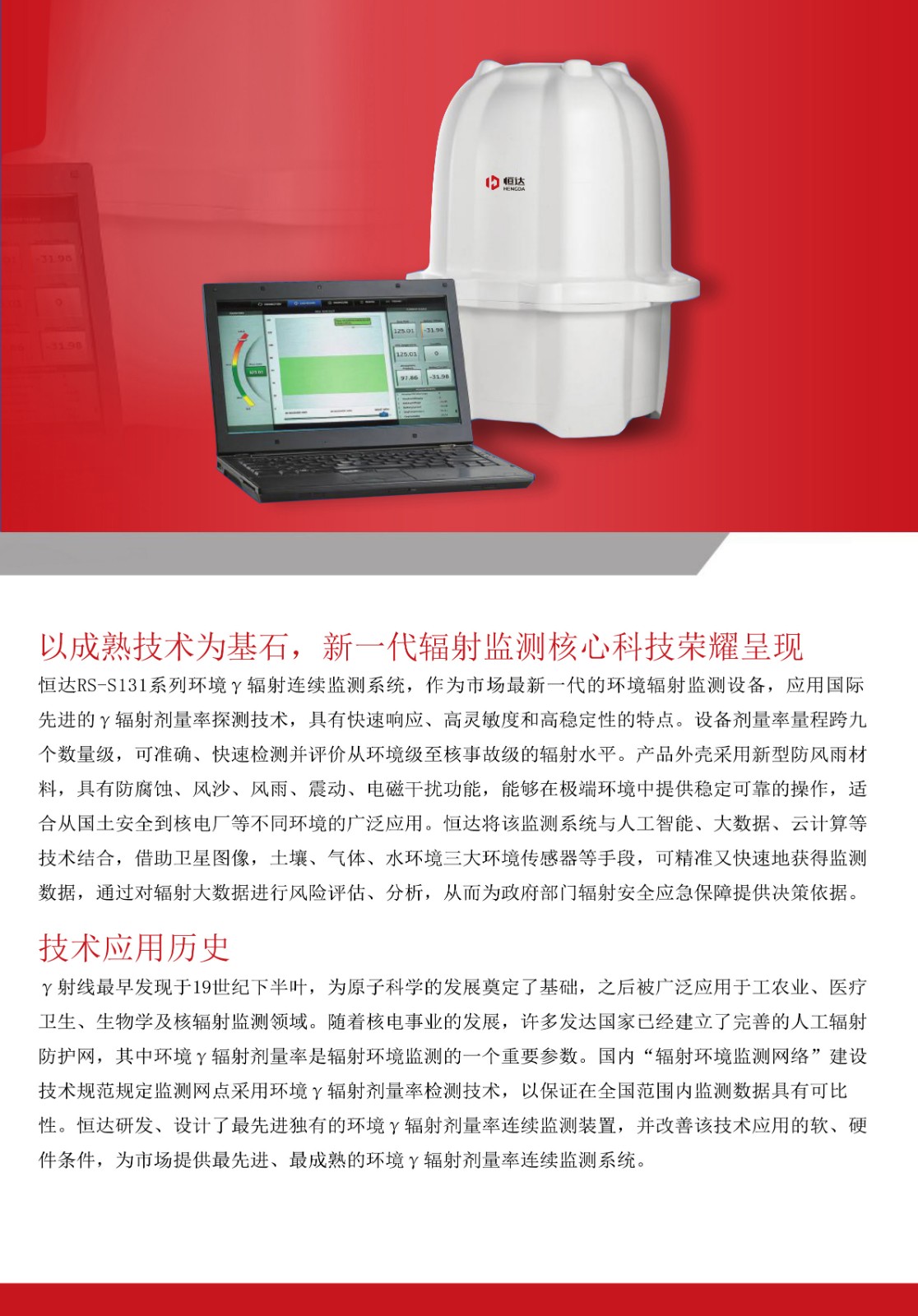 本產(chǎn)品為新一代的環(huán)境輻射監(jiān)測設備,在低劑量水平伽馬輻射的探測和測量方面提供了更加卓越的技術(shù)與表現(xiàn)。本產(chǎn)品繼續(xù)沿用前代產(chǎn)品的環(huán)境γ輻射劑量率監(jiān)測技術(shù),但在以下多個關(guān)鍵領域進行了改進:靈敏性、可靠性、穩(wěn)定性。本產(chǎn)品采用新型防風雨外殼,電子器件和診斷原件都進行了更新,能夠在極端環(huán)境中提供穩(wěn)定可靠的操作,非常適合從國土安全到核電廠的各種廣泛應用。